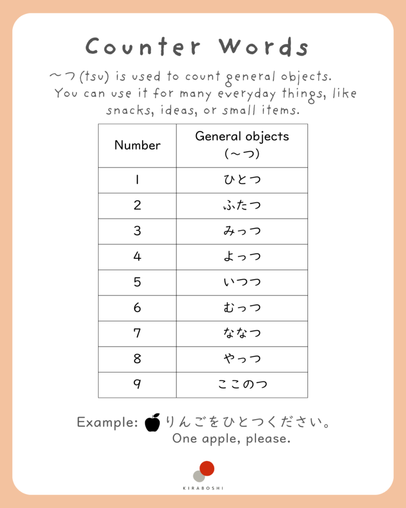 1. 〜つ (tsu) — for general objects
