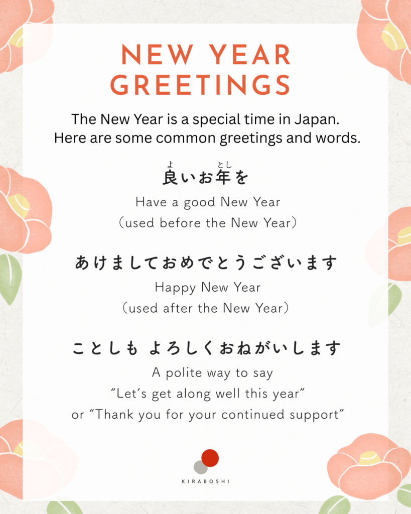 Here are some common Japanese New Year greetings and words you’ll often hear around this time.